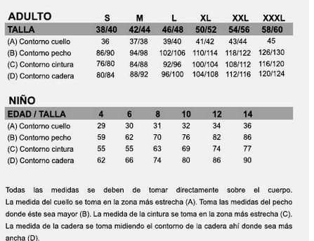- Talla 0: Contorno de pecho 50 cm (aproximadamente de tres a cuatro meses)